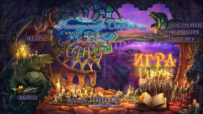 Нашептанные Секреты. Сквозь ветер. Коллекционное издание — третья часть красочных игр из серии «Whispered Secrets» на русском языке. Сюжетное переплетение детективного и сказочного жанра окунет вас в незабываемое приключение — расследование пропавших людей в городке Ридлетон, в котором с недавнего времени стали появляться необычные торнадо и странные существа. Сыграв на слабости людей попавших в беду, Темный Лорд похитил талантливых людей города, вынашивая свой пока неосуществленный план по завоеванию земли и погружении ее во мрак и хаос. Игра опубликована и доступна для скачивания.